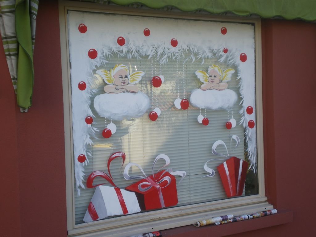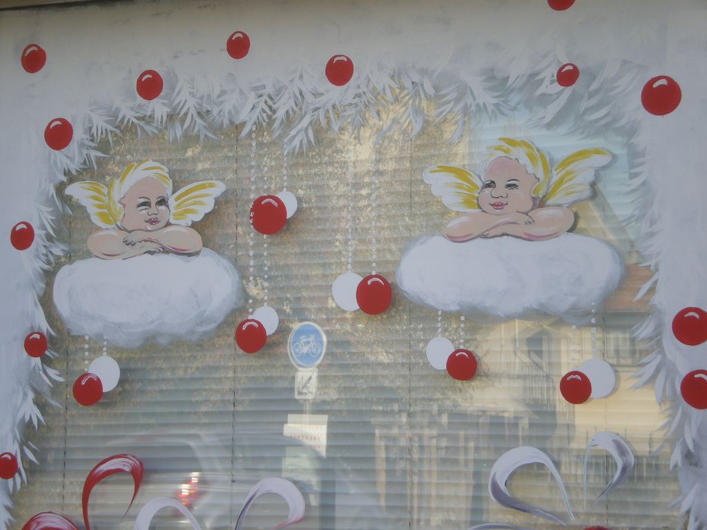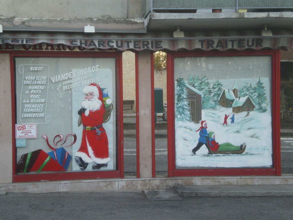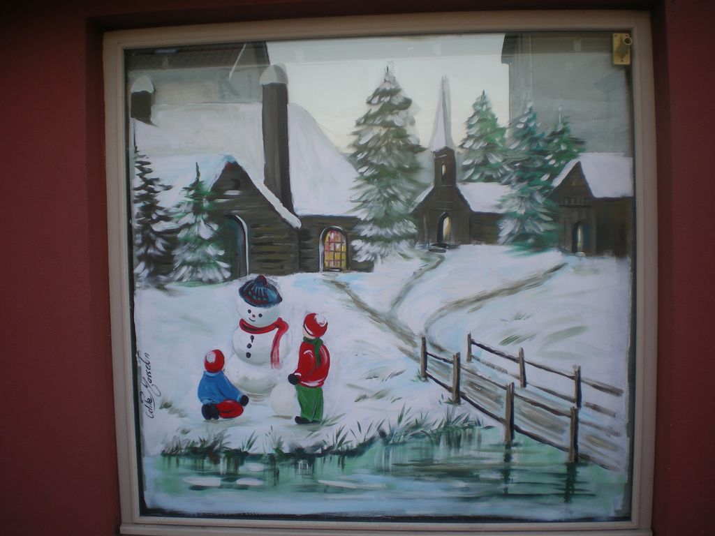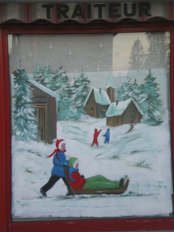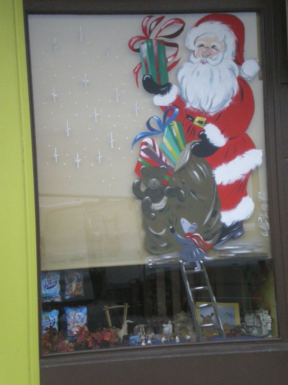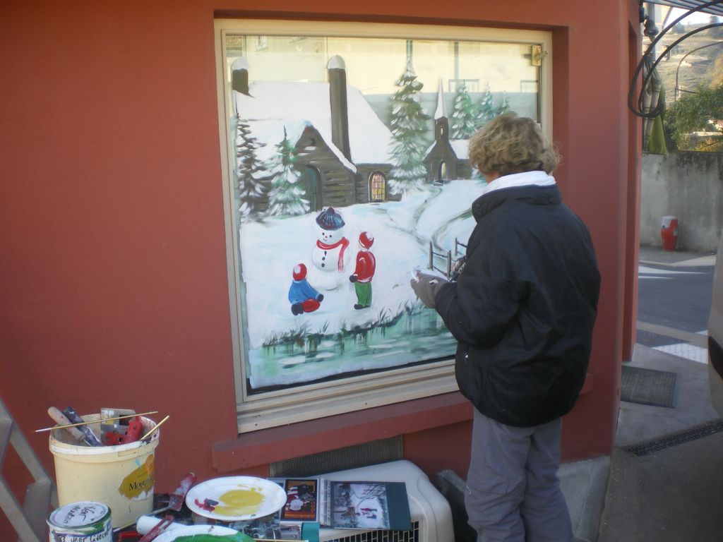 "Tableaux" sur vitres, à l'occasion des fêtes de fin d'année.