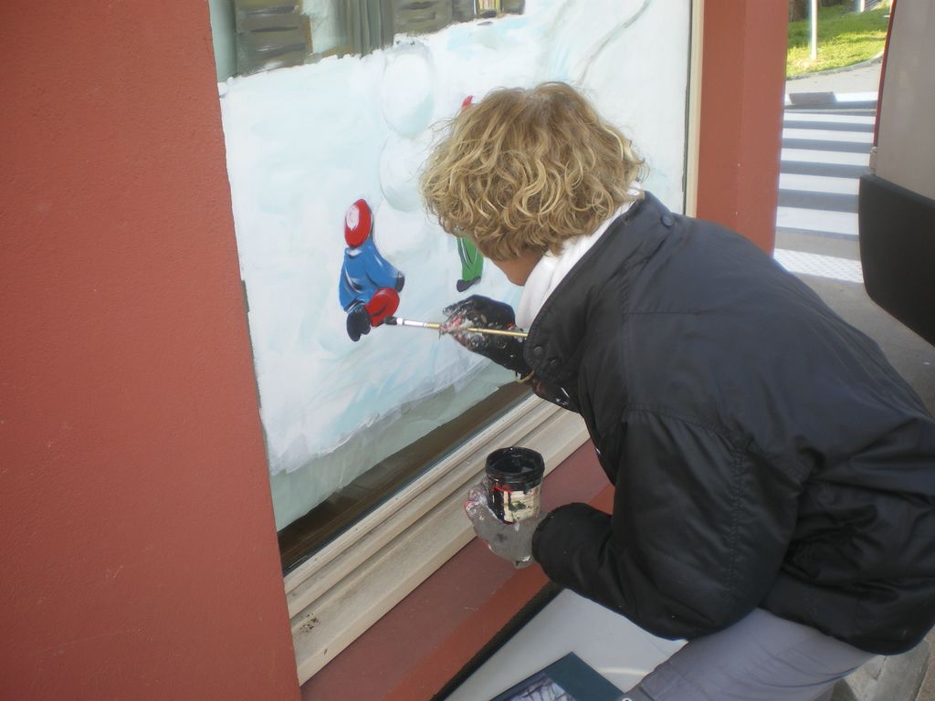 Peintre sur vitres : c'est de la peinture, des pinceaux et supporter le froid parfois.