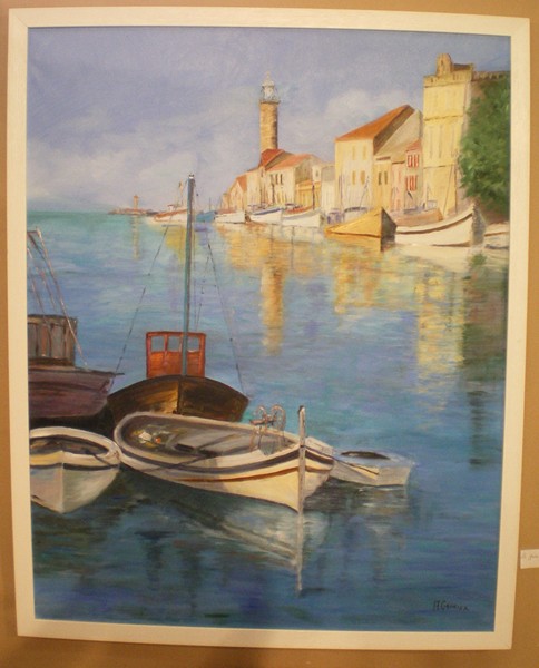 Le tableau des pointus dans le Sud représente le canal du Grau-du-Roi (Gard) vers la mer. J'ai la même vue peinte par un artiste local, Corrado, mais plutôt avec des chalutiers que des pointus. C'est un site charmant, donc classique.