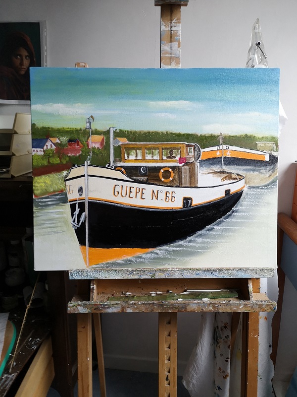 bonjour j ai fini une toile du bateau Ben d or qui était en trein d accoster a Béthune
