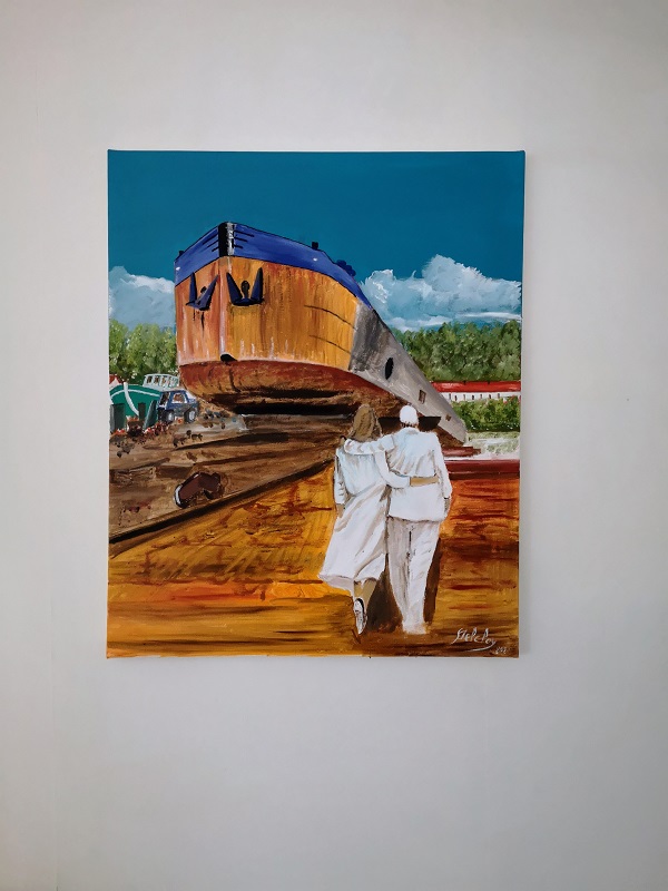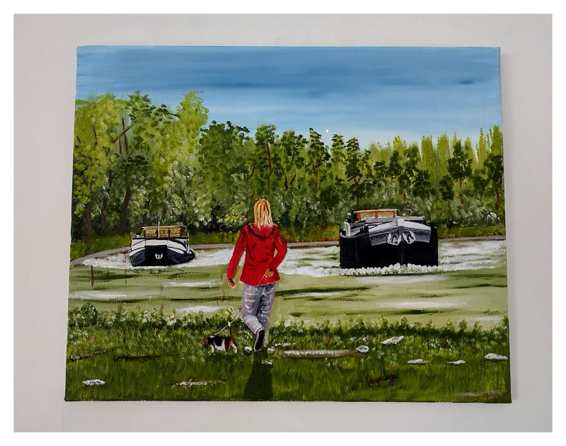 bonjour!!aujourd’hui cette peinture du bateau Angele des souvenirs de Béthune dans les années 1970nous étions souvent amarrer devant la maison de ma tante Gilberte