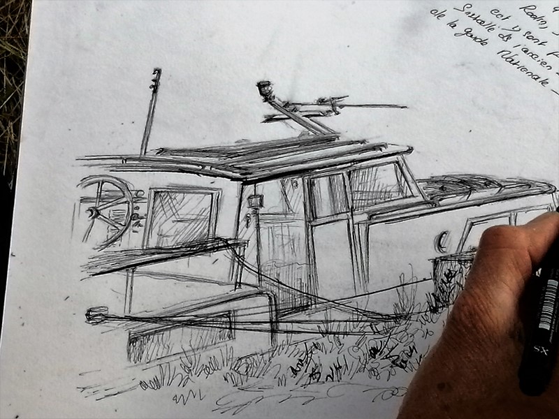 L'on pourrait dire : peindre sur le motif, mais là tout simplement : dessin de plein air.