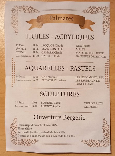 Et pour l’anecdote, le 1° prix Aquarelles-Pastels à Carry-le -Rouet, c’est Gay Martine, mais pas celle que je cotoies, depuis 50 ans !...