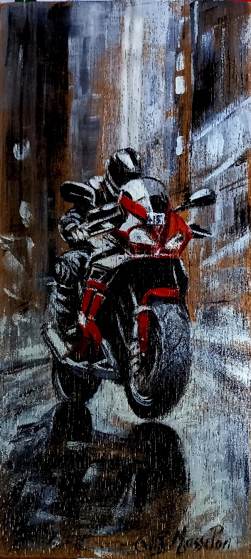 Petite "planchette " en bois (30 x 18) pour un futur champion. (Pilote de moto. )