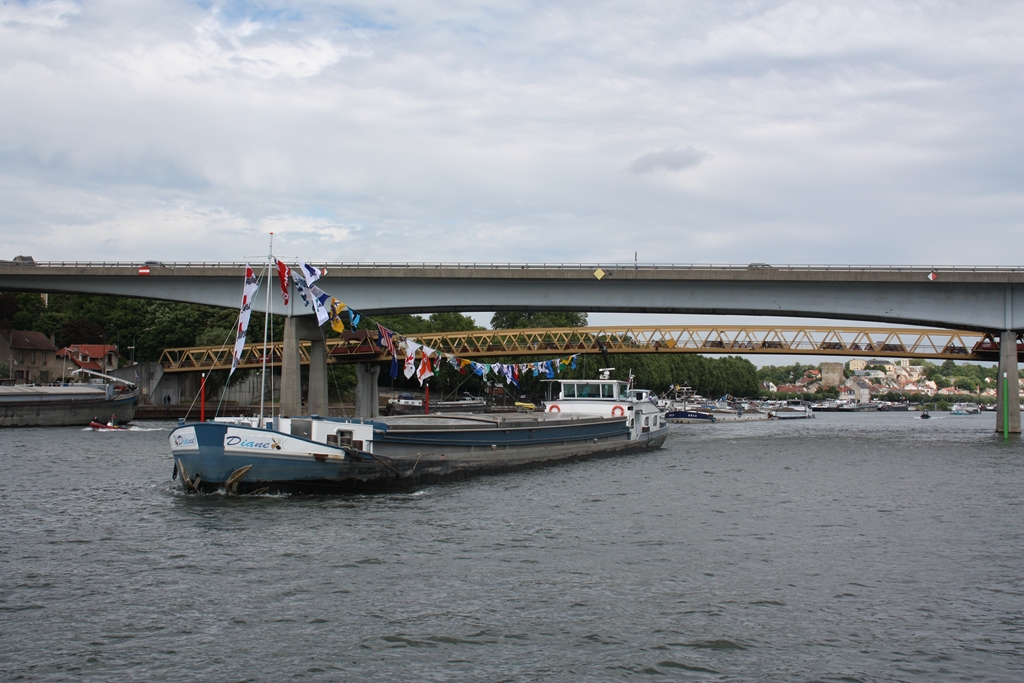 Pareil qu'à Suresnes, nous sortirons de l'écluse avant le convoi, et là plusieurs Plaisance venus de Conflans, nous attendent...