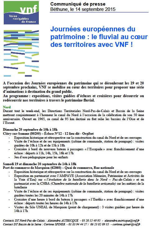 VNF a eu la bonne idée de publier une liste des événements organisés pour les Journées du Patrimoine en lien avec son réseau fluvial :