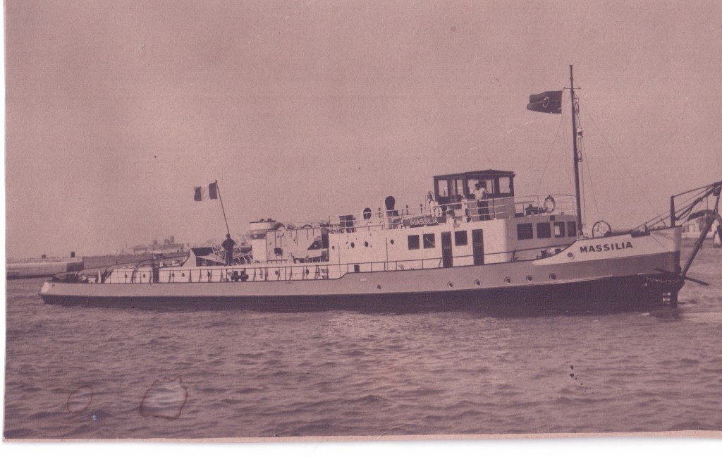 Il était amarré devant la mairie, peu reluisant "le PANTHERE : avant de venir chez nous il était sur le Rhin, venu par la mer du Nord. C'est moi qui ai enlevé le pavillon suisse que j'ai remplacé par le drapeau tricolore. Par la suite, il a été appelé MASSILIA.