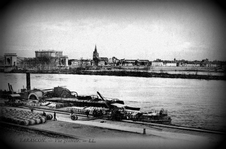 Pour la 2°vue de ROL78, si en arrière plan, c'est bien Tarascon, le VENTOUX est en rive droite, donc côté Beaucaire, entre le pont suspendu et le pont de chemin de fer.