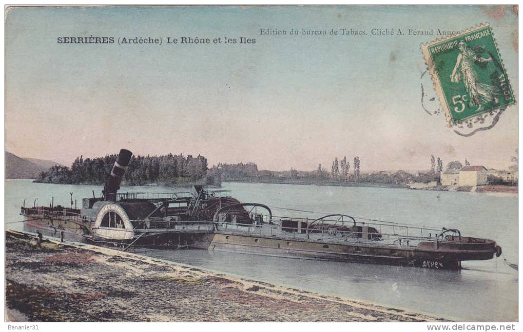 Carte postale du PELVOUX, longeant l'île de La Barthelasse, avec les symboles d'Avignon : le Pont, le Palais des Papes et Notre-Dame-des-Doms, envoyée l'avant-veille de Noël 1908.