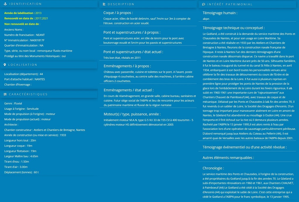 GOELAND - NA001817F - a été labellisé PATRIMOINE MARITIME ET FLUVIAL en 2013, renouvelé en 2017 et 2021.