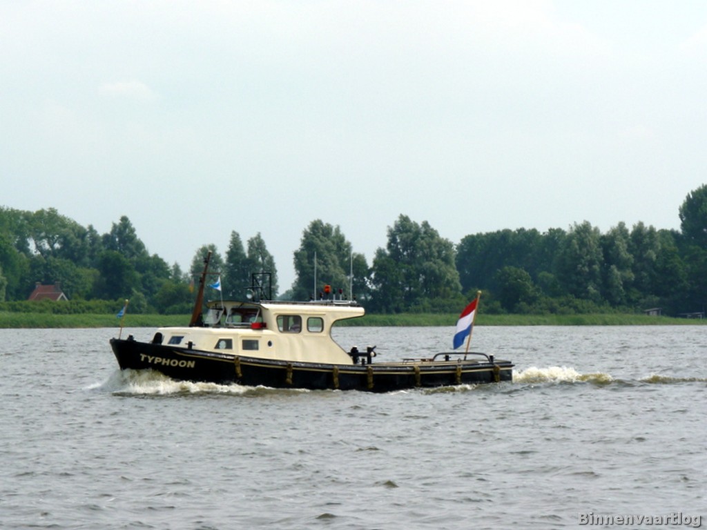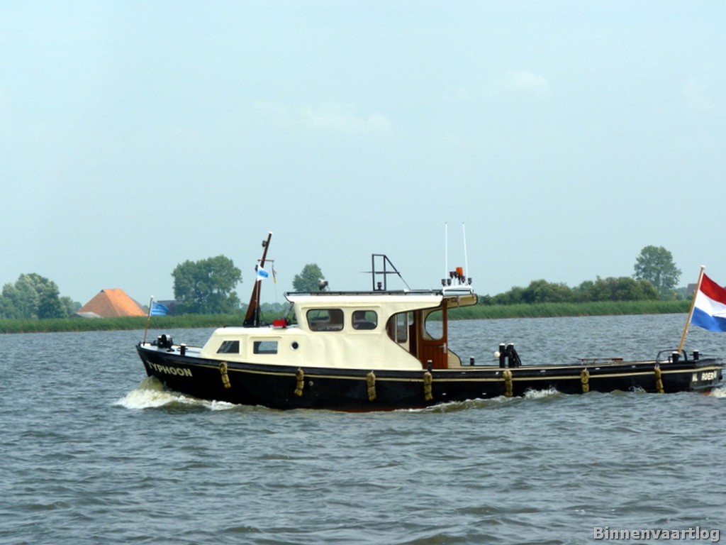 Typhoon , 12,17 x 3,45 x 1,10 , Bouwjaar 1958 , Werf VEB Yachtwerf in Berlijn ( Duitsland ) , 168 pk DAF , eigenaar N. van Heugten in Roermond