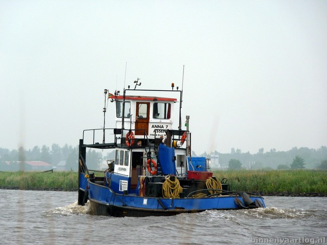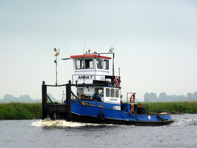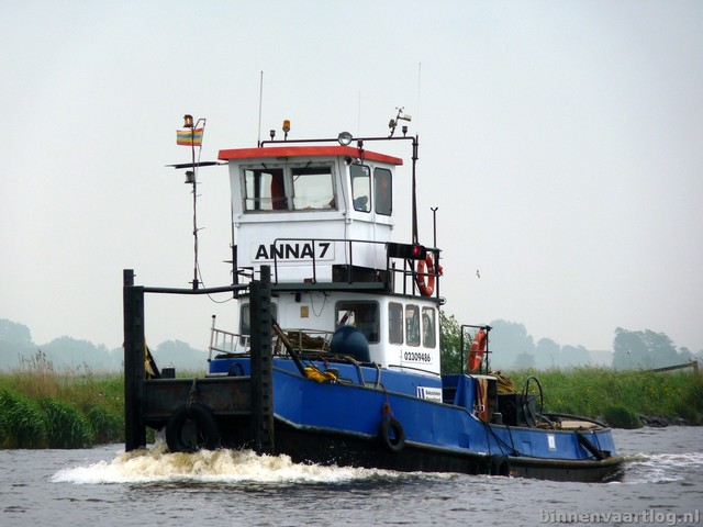 Anna 7 , 16,74 x 4,74 x 1,70 , Bouwjaar 1955 , Werf L.J. Boer in Sliedrecht ( Nederland ) , 370 pk Caterpillar , ex Hoop op Zegen , ex Dorine , ex 4 x Triomf , ex Portus 2 , eigenaar Sleepdienst Bokschoten in Hooghalen , ENI 02309486