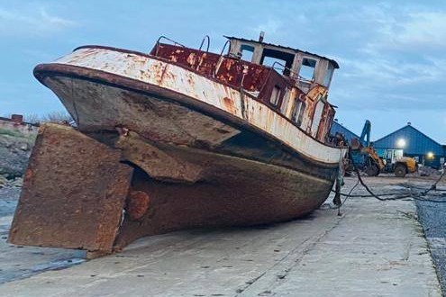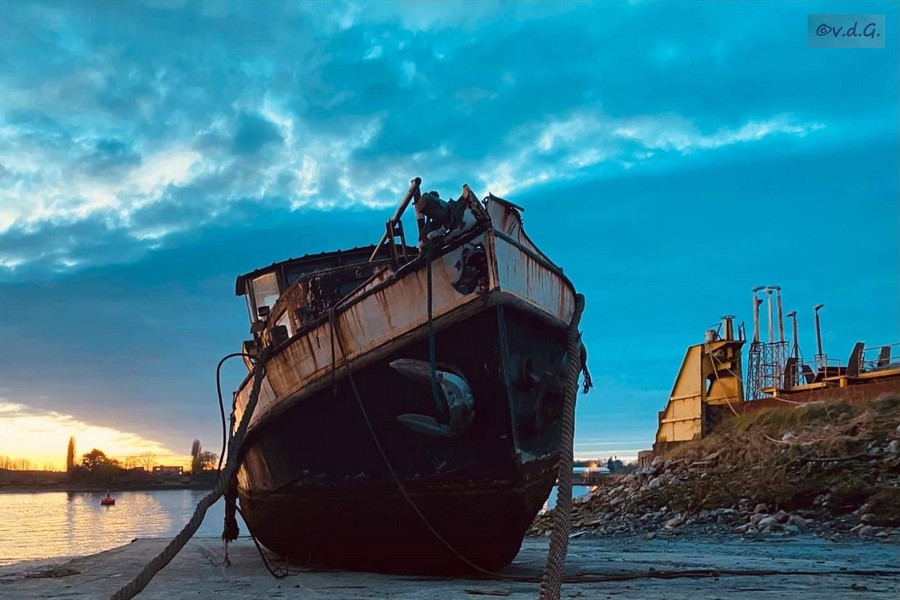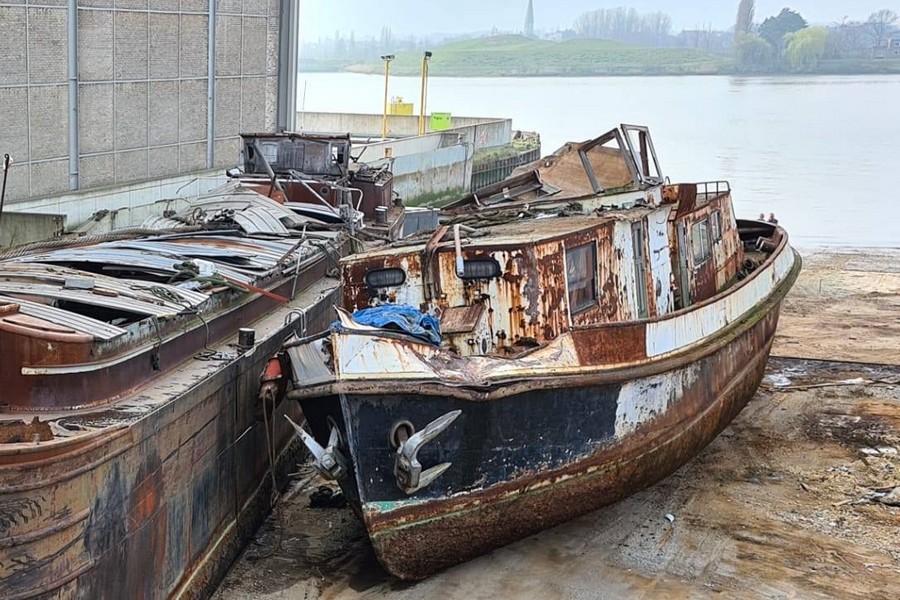 Un remorqueur en train de finir sa vie chez van der Gucht à Hoboken ; les photos sont d'Ivan van der Gucht, du 19 mars 2020, publiées par Jenet van Suijlekom dans le groupe Facebook