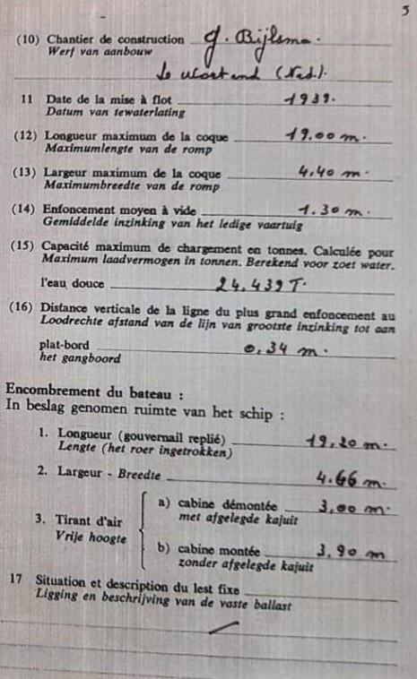 construit en 1939, chantiers G. Bijlsma à Wortena (NL)