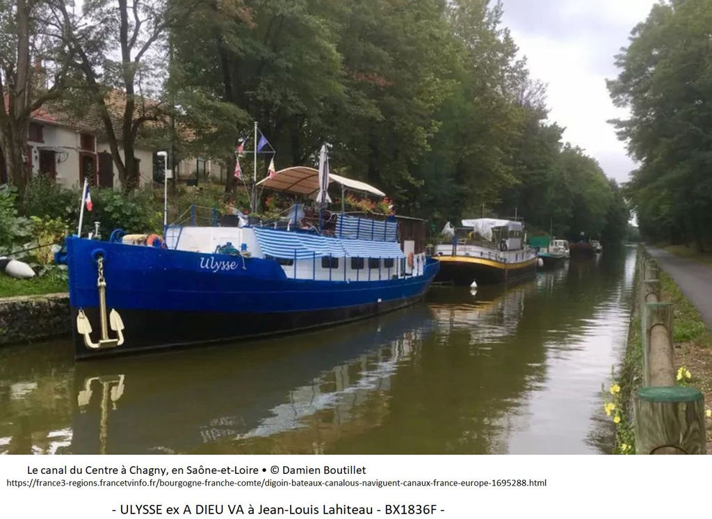 Aujourd’hui le bateau est stationné à Chagny (Saône et Loire) sous la devise ULYSSE.