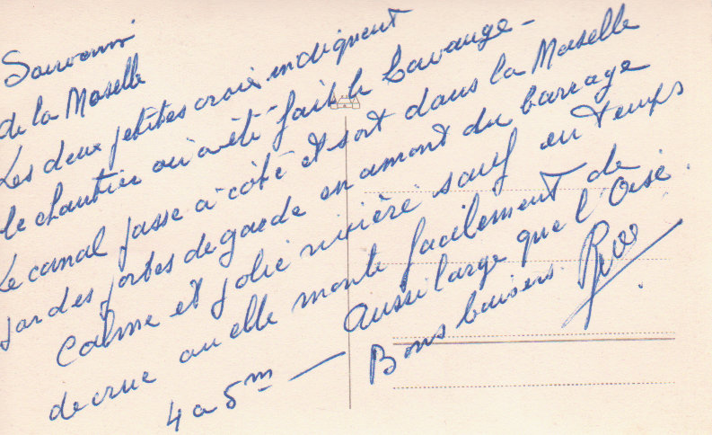 - l'ancien canal : pour situer par rapport à la CPSM publiée par Guy, le photographe se trouve à peu près au niveau de la passerelle, regardant vers le chantier. L'entrée de la cale se trouve sur la droite, là où les arbres sont un peu plus petits