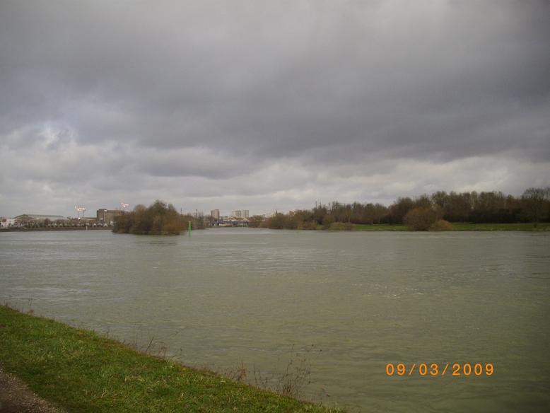vue depuis l'amont de l'ile ou il y avait un chantier (sur la gauche de la photo)