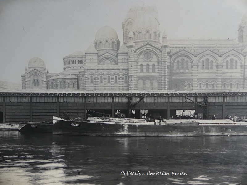 Deux barque du Rhône sur une photo originale prise à Marseille. Nous avons au premier plan le MOSELLE et derrière lui à quai le RUBIS