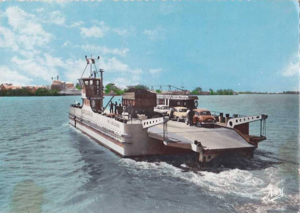 "Le bac de Barcarin, en deux parties, comme dans les années 1960/70". Vue les voitures transportées, ce doit être à peu près à cette époque. Pour aller de Saint-Louis aux saintes, on disait : "passe le bac d'abord".