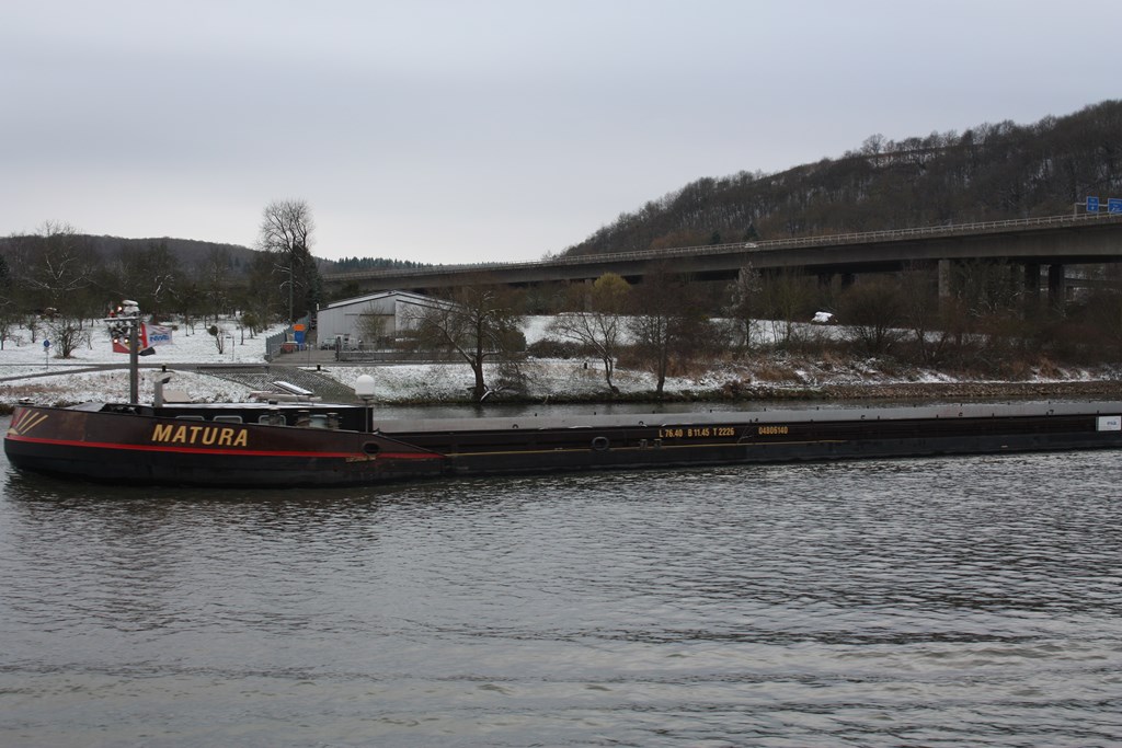Matura , 76,50 x 11,45 x 3,20 , 2226 ton , Bouwjaar 2008 , Werf Muehlhan Steel Service in Stettin ( Polen ) en De Gerlien van Tiem BV in Druten ( Nederland ) , 635 pk Cummins Verhaar Omega-Jet boegschroef , eigenaar D. Wirtz in Konz , ENI 04806140
