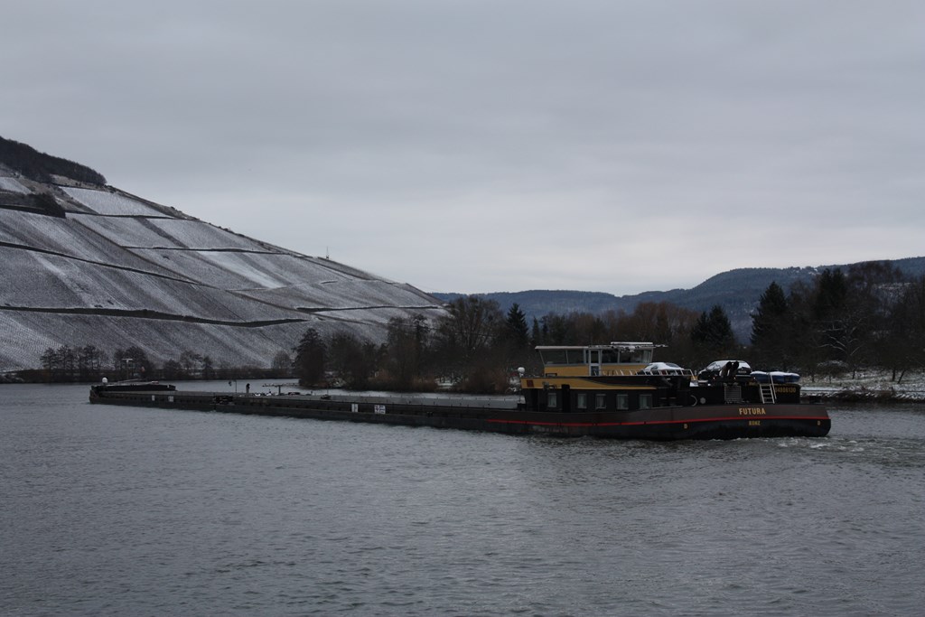 Futura , 95,50 x 11,45 x 3,20 , 2547 ton , Bouwjaar 2008 , Werf Muehlhan Steel Service in Stettin ( Polen ) en De Gerlien van Tiem BV in Druten ( Nederland ) , 2 x 1600 pk Cummins en 635 pk Cummins Verhaar Omega-Jet boegschroef , eigenaar D. Wirtz in Konz , ENI 04806130