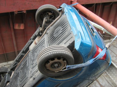 C'est arrivé il y a trois ans, embarquement de la voiture dans la cale sur des ponts. La voiture était au dessus de la cale quand une sangle a cassée. Nous étions sur les plats-bords chacun d'un coté, une main posée sur la roue pour empêcher la voiture de tourner.Tout s'est passé très vite. Un craquement et la chute rapide. On a eu peur après. pas le temps de réagir, elle était arrivée dans la cale et sans abimer le bateau. On était toujours sur les plats-bords, un certain temps avant de réaliser.Pas de blessés mais maintenant évidement j'ai la trouille.