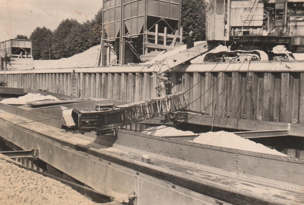 Une vieille photo du quai de Javel à Paris, mes parents travaillaient sur le Caucase (barge l'Australien). Une mauvaise manoeuvre du grutier et voilà! Personne en dessous, et mon père a pris son appareil photo.