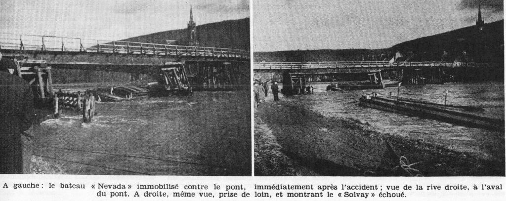 »D'après les autres relations de I'accident, le batelier montant s'était engagé dans la passe bien que n'étant pas assez fort. Les règlements obligent à une vitesse minimum et tous les bateliers Solvay, habitués de la Meuse, connaissent le danger de ces ponts.