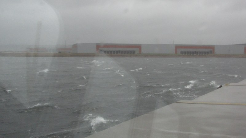 Les conteneurs en vrac, c'était ce matin je les ai entendu tomber ! par contre l'engin qui semble être passé au travers du quai daterai de plusieurs jours...