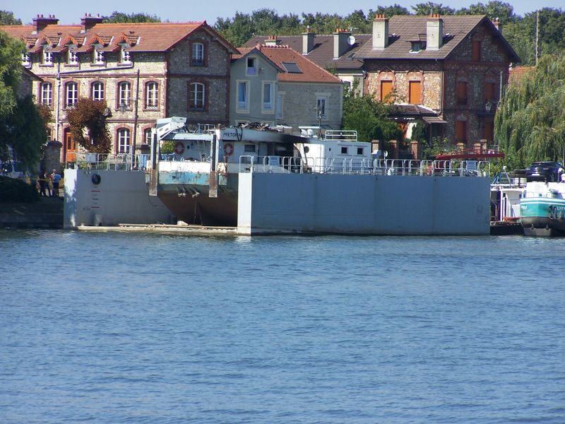 Dans la nuit de samedi a dimanche, vers 1 h 50, avenue de Fin-d'Oise, « le Pretoria », un pousseur de peniches amarre sur une cale flottante pour des reparations, est secoue par une violente explosion. Le sinistre vient de la salle des machines. Un incendie eclate et ravage le compartiment ou se loge le moteur. Le feu endommage fortement la passerelle et la cabine du marinier. Les pompiers arrivent rapidement sur les lieux et viennent a bout des flammes. Ils decouvrent sur le sol un corps inanime.