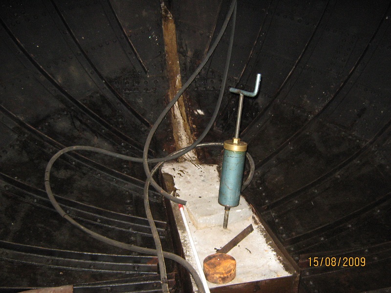 J'ai pu visiter l'interieur non amenage pour voir la structure metallique : la pompe a graisse du presse etoupe