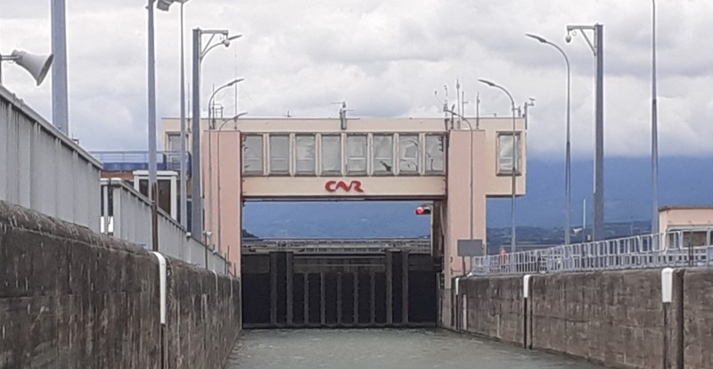 Je vous passe les détails, et d'un seul coup la porte ouverte se referme et vu la "courant" l'écluse se met au niveau amont.
