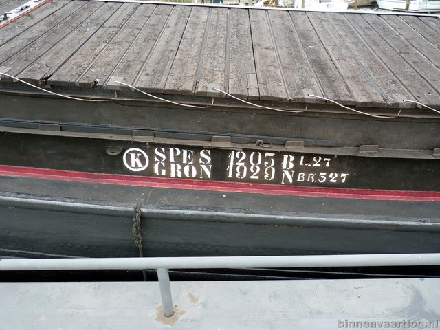 Spes , 27,03 x 5,27 x 1,66 , 131 ton , Bouwjaar 1929 , Werf A. Apol in Wirdum ( Nederland ) , 116 pk Deutz , eigenaar M. Kuperus in Raamsdonk , ENI 02201203