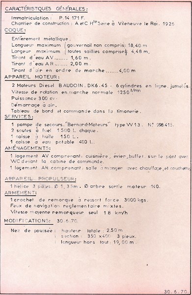 Dernière motorisation Baudoin DK6 2x 125cv sur une ligne d'arbre .Détruit dans les années 1995/2000 PS: à ce jour je n'ai toujours pas réussi à me procurer une photo aux couleurs EMCC
