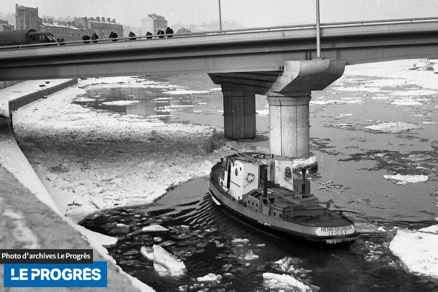 Sur le site internet du journal Le Progrès, dans un article paru en 2019 et consacré aux vagues de froid qui on touché Lyon, on trouve cette photo avec un remorqueur qui passe sous un pont :