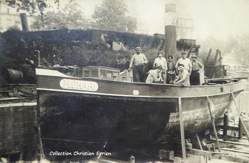 Je n'ai pas trouvé ce remorqueur sur le forum. C'est une carte photo non datée et non située. A l'arrière plan on voit des immeubles ce qui me fait dire que ça pourrait être le chantier Béranger sur le canal de St Maurice à Charenton