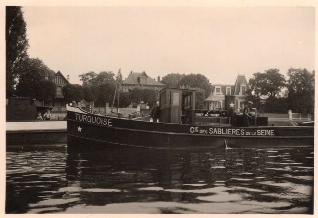 Sur les photos, il est brêlé (c'est comme ça qu'on dit ?) à une barge qui ressemble furieusement à une B de chez Solvay, mais malheureusement sans indice pour l'identifier ! et à côté, c'est aussi un ancien Solvay, le NEPTUNE ex SOLVAY 77. Et derrière, côté berge, c'est aussi une ancienne barge Solvay, l'OMBRE ex B5. Et côté rivière, le CERON...