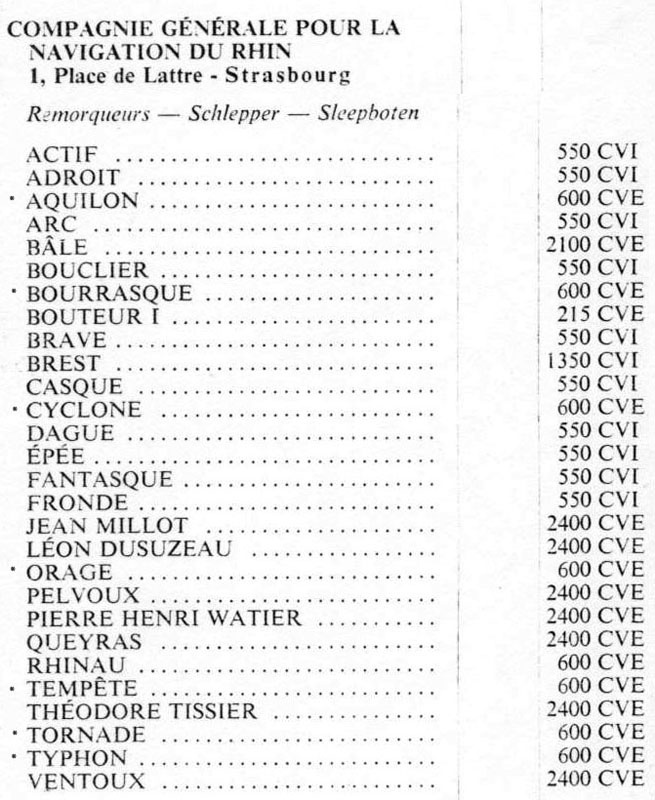 Rhinau construit par De Biesbosch avant la guerre. Les autres marque * bateaux de Arsenal Cherbourg.