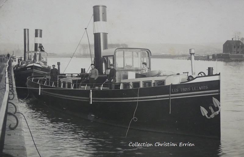 Voici une très jolie carte photo prise à mon avis sur la Meuse en Belgique. Au premier plan le remorqueur