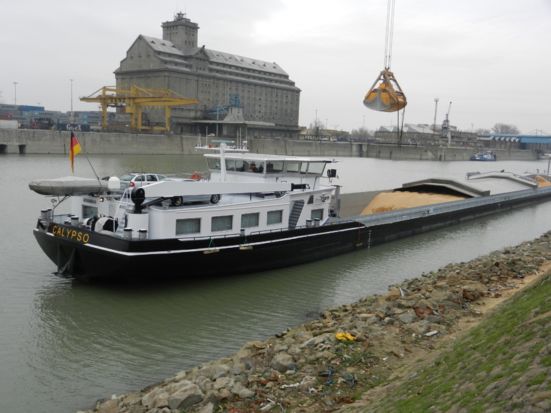 Calypso , 109,98 x 11,45 x 3,23 , 2705 ton , Bouwjaar 2000 , Werf JSC Zaliv Shipyard in Kerch ( Ukraine ) en De Gerlien – Van Tiem in Druten ( Nederland ) , 1800 pk ABC en 571 pk MTU – Veth-Jet boegschrowef , ex Rosarium , eigenaar V. Schneidler in Gernsheim , ENI 06003594.