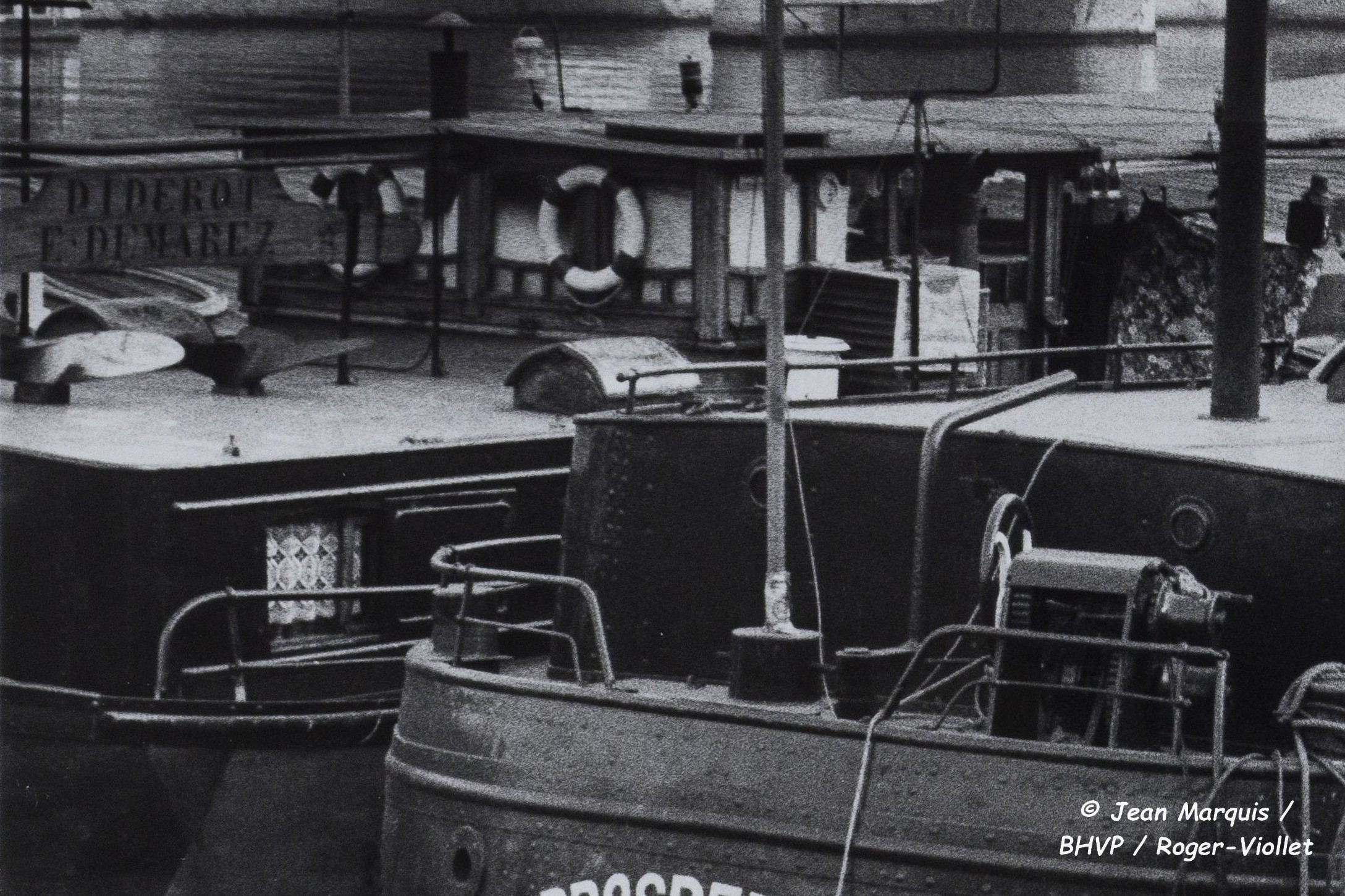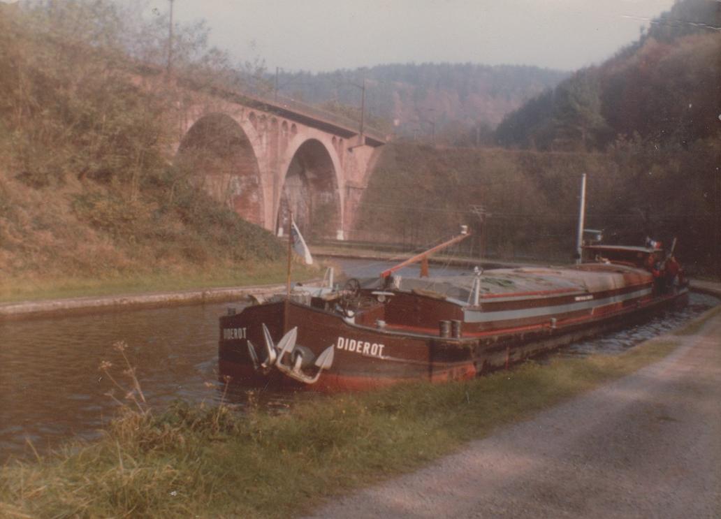 - Marcel Demarez à la barre du DIDEROT dans l'écluse de Chamarandes, 4 novembre 1972.