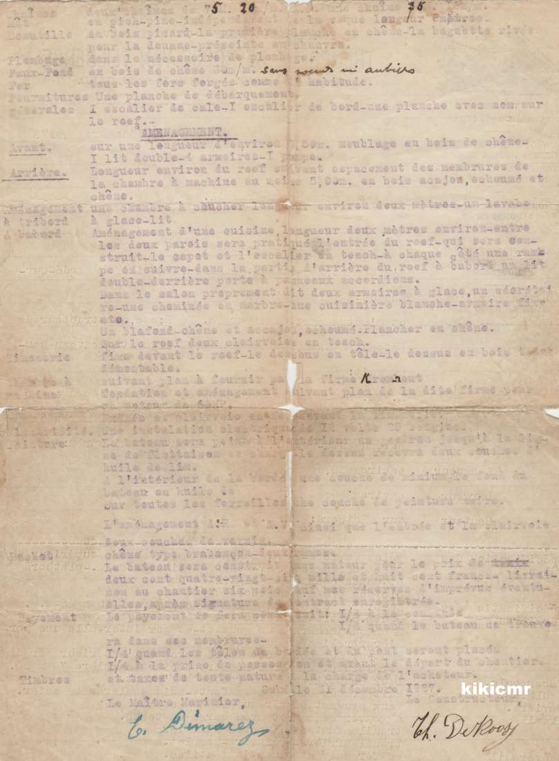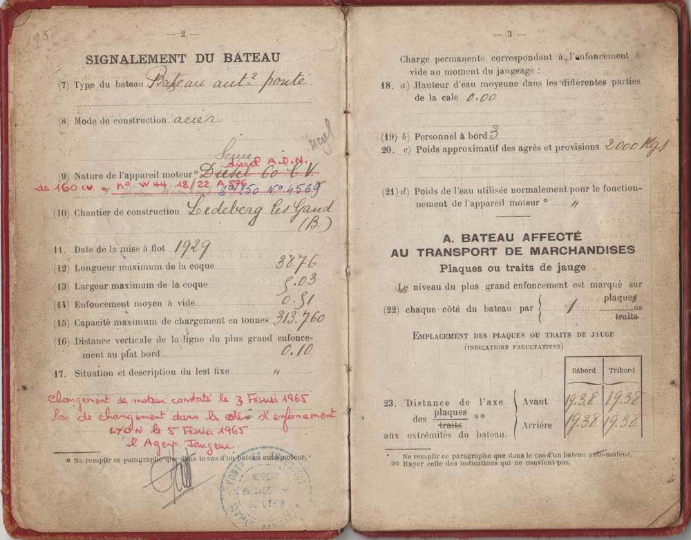 Arrêtons-nous sur ce qu'on peut lire, le chantier de construction. Le carnet de jaugeage indique qu'il a été construit à Ledeberg-les-Gand, ce que Guy a aussi dans ses relevés, et sur la promesse de vente, le nom du chantier est Pol de Roose, qu'on connaît surtout pour être situé à Melle, à quelques kilomètres de Ledeberg... Et j'ai eu la chance de voir le bon de commande originale du