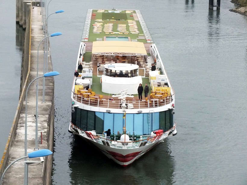 Boots sur le Rhone depuis 4 ou 5 ans.Bateau imposant de par sa forme et ses hauteurs de pont.