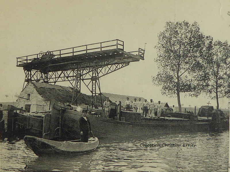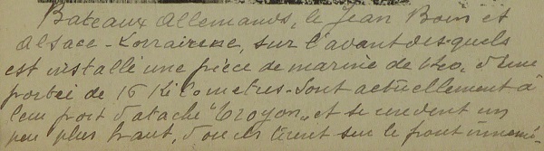 Grace au texte les deux bateaux sont nommés, le JEAN BOUIN et ALSACE LORRAINE coté rive. Le lieu de prise de vue est également mentionné à savoir Troyon sur le canal de l'Est.