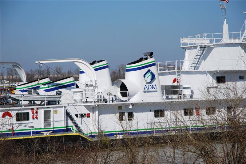 J'ai vu aussi que les barges n'ont pas de propulseur , ni ancres , ni feux de navigation , seul le pousseur est super équipé et un feu blanc sur la première barge avant est allumé de nuit , dans les virages de Morgan City c'est un autre pousseur plus petit qui vient pousser l'avant du convoi en cas de nécessité .