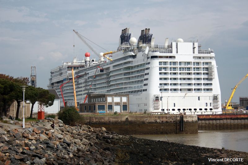 Le Norvegian Epic, plus gros paquebot construit par les chantiers navals, subit la dernière phase de travaux avant sa livraison.