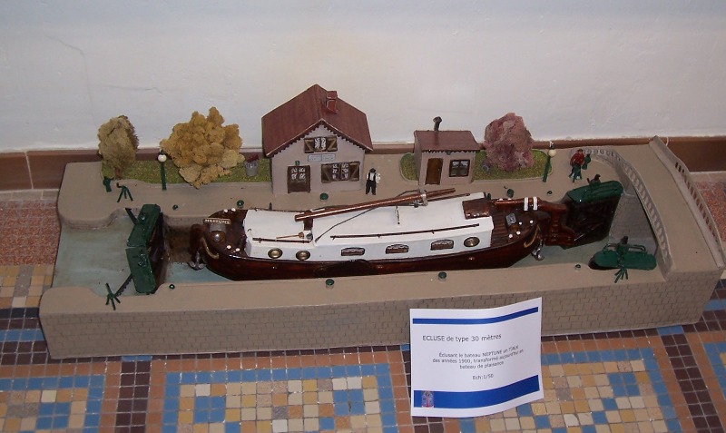 MAQUETTE D'ECLUSE ET SON BATEAU