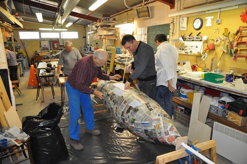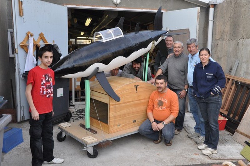 Nous on a construit le sous-marin requin de tintin pour le carnaval du village