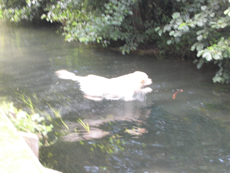 Il adore les batons dans l'eau, et les canards il s'en fiche !