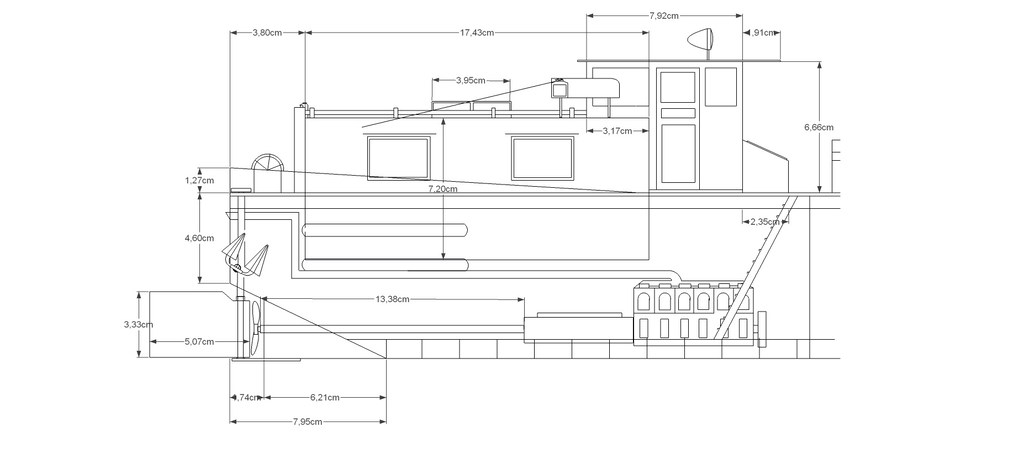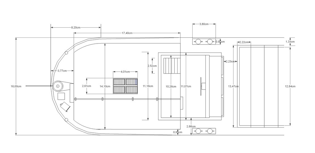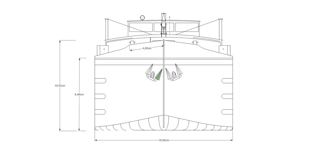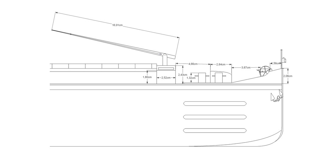 j'ai retravaillé les plans de l'automoteur il ne sont pas parfait mais donnent les principal côte aux 1/32 eme, après comme dit ce sont des côtes plus ou moins standard sachant qu'un gabarit Freycinet peut varier pour sa longueur de 38 à 39,50 m, 5 à 5,10 m de large et de 2 20 m à 2,70 m de tirant d'eau suivant le type de bateau.